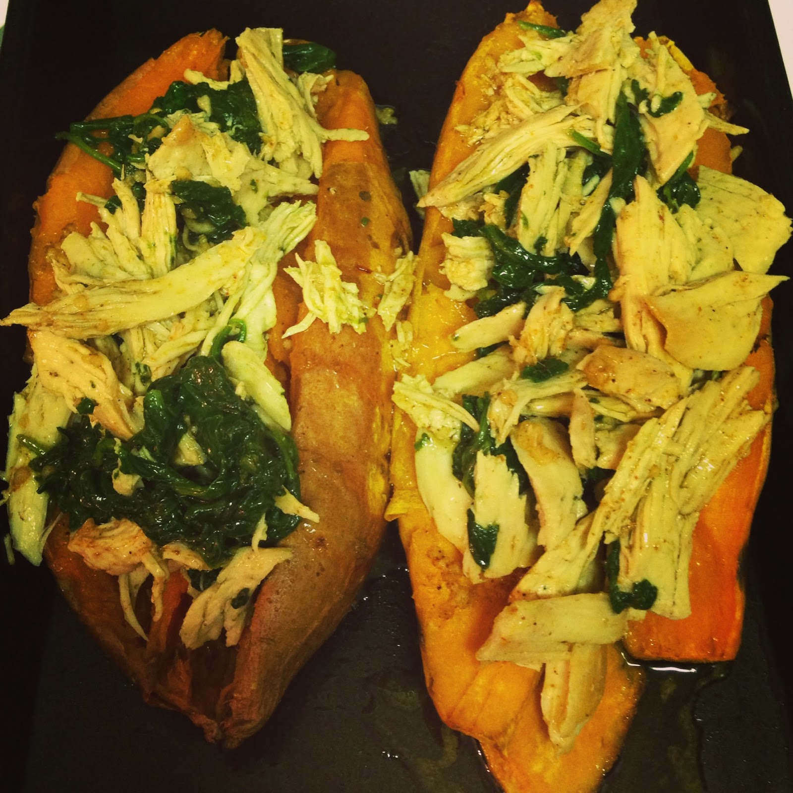 - While the skins bake mix the spinach, chicken and chipotle sauce together.